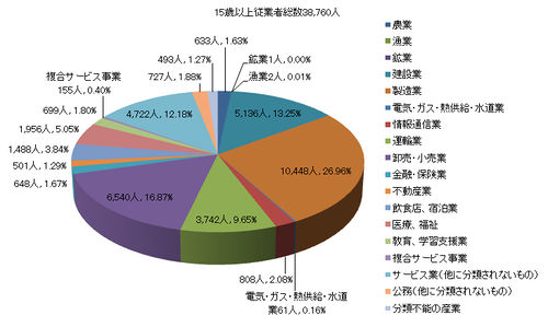 八潮市の産業大分類別15歳以上就業者数(昭和50年〈1975年〉10月1日現在/国勢調査)