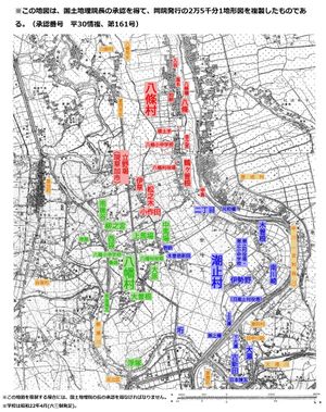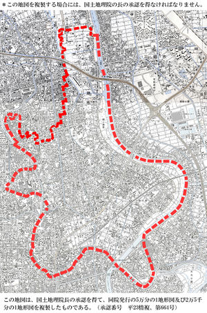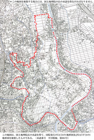 - ↑ 1.0 1.1 1.2 国土地理院の地図を使用している画像について:「この地図は、国土地理院長の承認を得て、同院発行の5万分の1地形図および2万5千分の1地形図を複製したものである。(承認番号 平23情複、第664号)。この地図を複製する場合には、国土地理院の長の承認を得なければなりません。」または「この地図は、国土地理院長の承認を得て、同院発行の2万5千分の1地形図を複製したものである。(承認番号 平27情複、第101号)(以下同文)」または「この地図は、国土地理院長の承認を得て、同院発行の2万5千分1地形図および2万5千分の1地形図を複製したものである。(承認番号 平28情複、第476号)(以下同文)」または「この地図は、国土地理院長の承認を得て、同院発行の2万5千分の1地形図を複製したものである。(承認番号 平30情複、第161号)(以下同文)」という文言を画像に挿入しています。