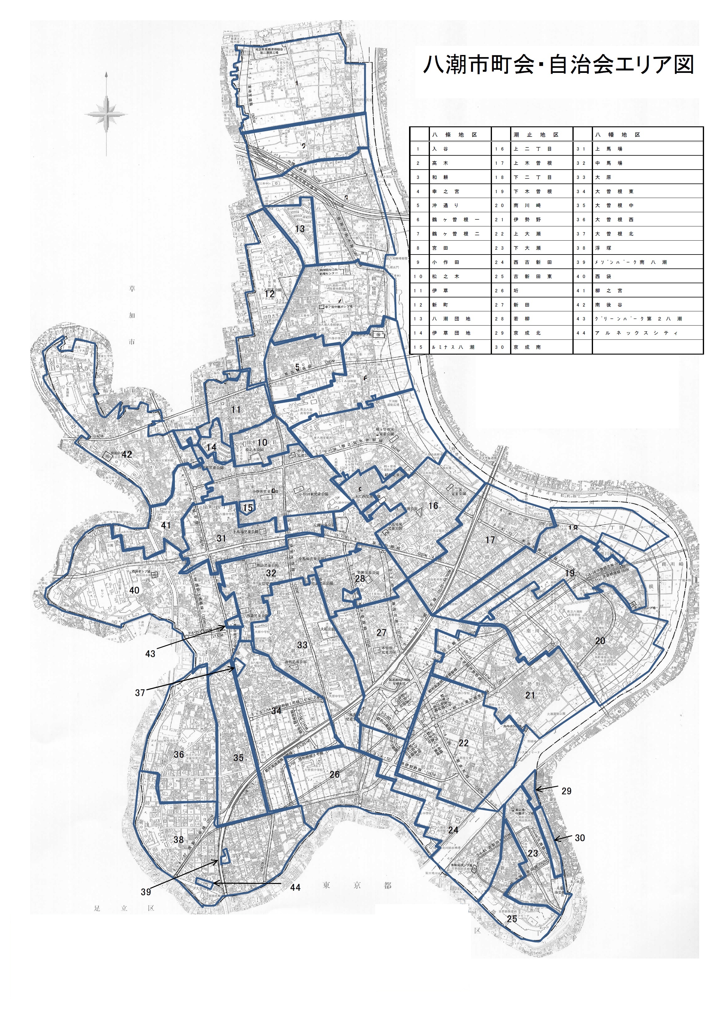 - 備考:各町会・自治会の紹介(八潮市ホームページ)へリンクする地図はこちら(同ホームページへリンク)
