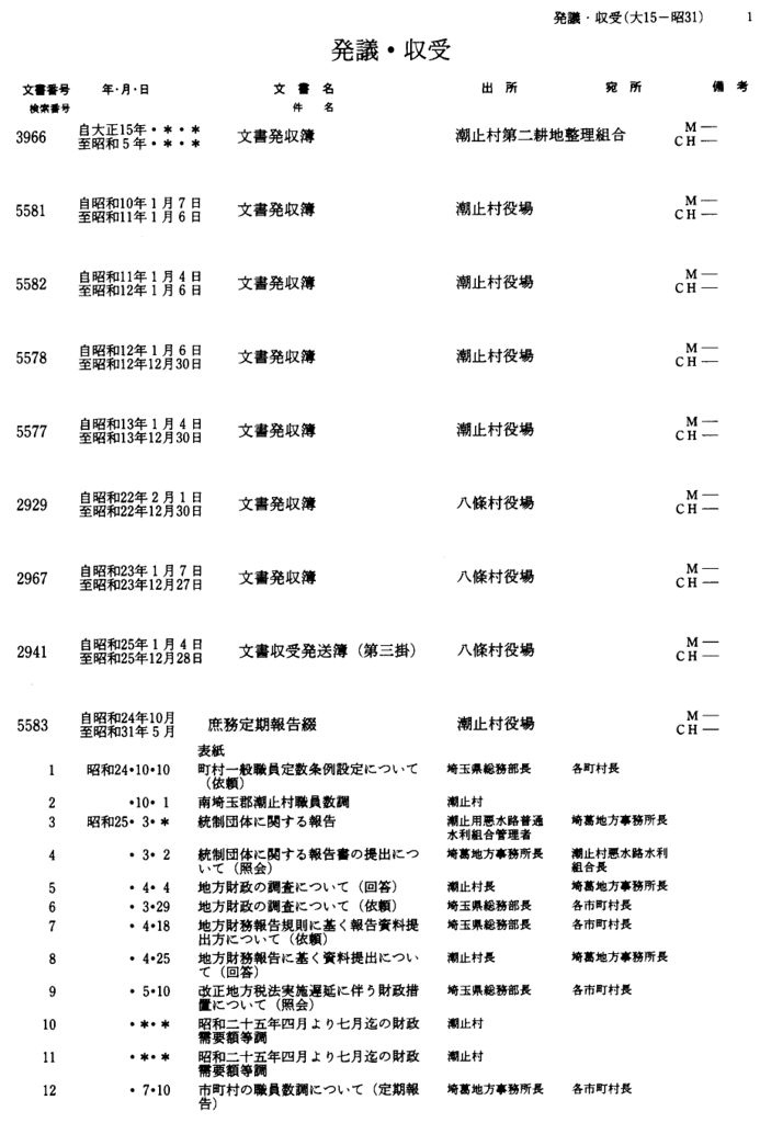 - 出典:八潮市立資料館編集発行『八潮の行政文書目録3 庶務編下』(1992年)1ページより転載