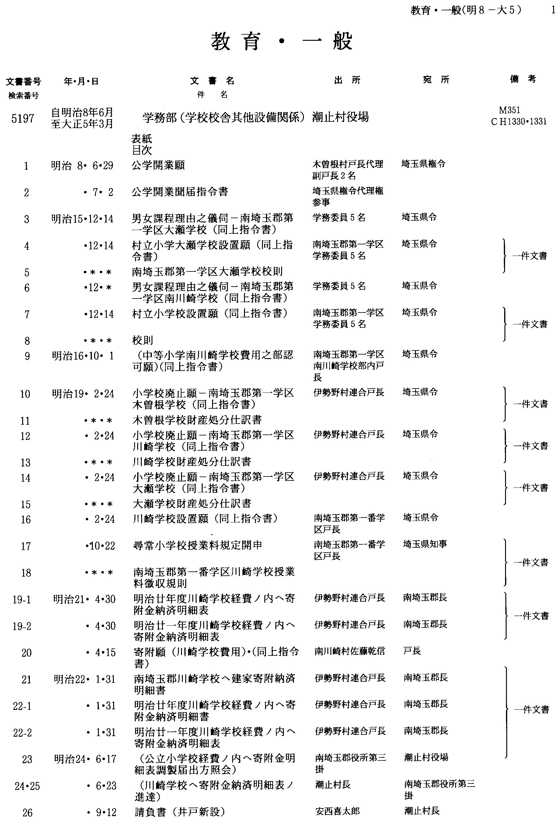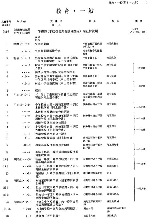 - 出典:八潮市立資料館編集発行『八潮の行政文書目録6 教育(一般)編上』(1996年)1ページより転載