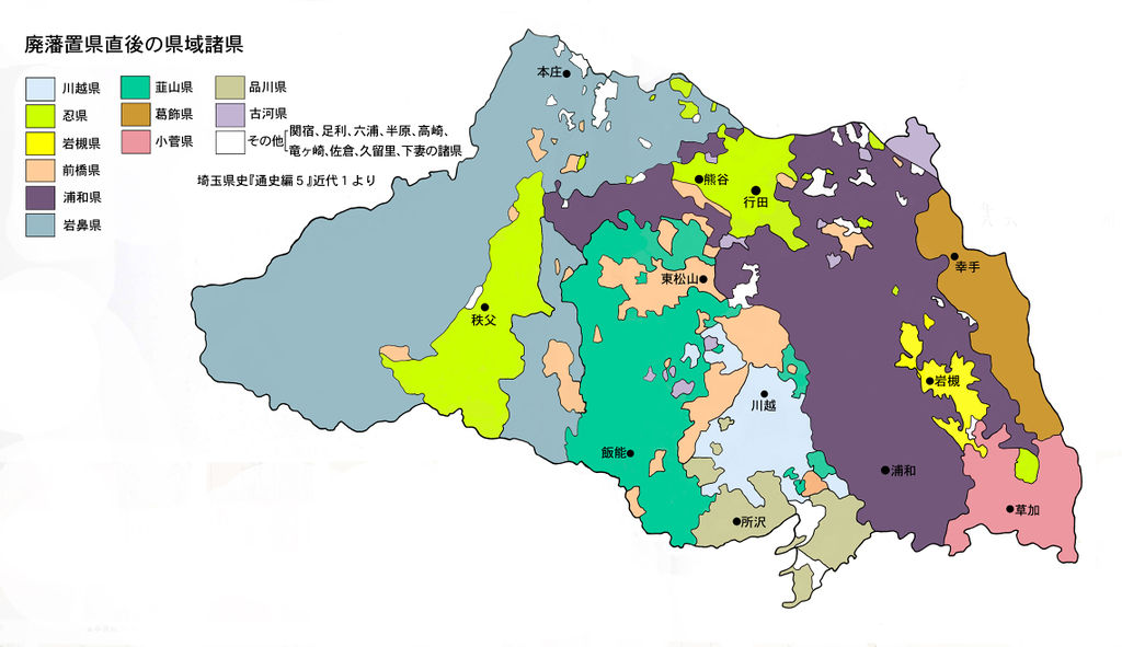 - タイトル:明治4年(1871)年7月廃藩置県直後の現埼玉県域諸県図