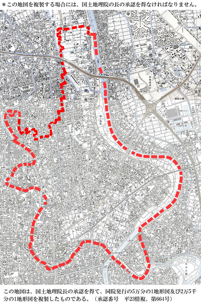 - 『れきナビ―やしお歴史事典』:旧版:地図・絵図・航空写真にみる八潮周辺の変遷(20130213版)