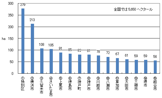 - タイトル:小松菜の作付面積市町村別トップ15(平成18年〈2006年〉産)
