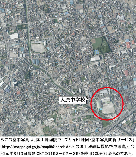 - タイトル:令和元年(2019年)8月3日 空中写真(大原中学校周辺)