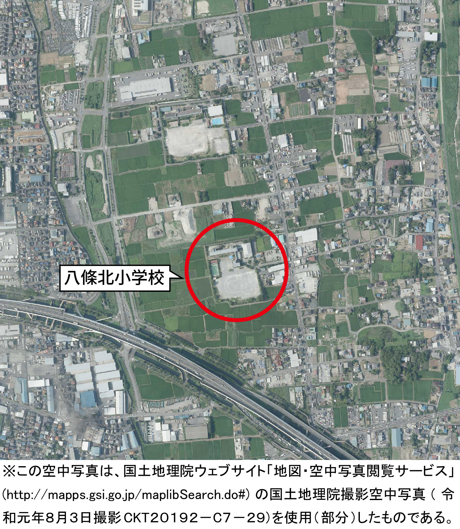 - タイトル:令和元年(2019年)8月3日 空中写真(八條北小学校周辺)