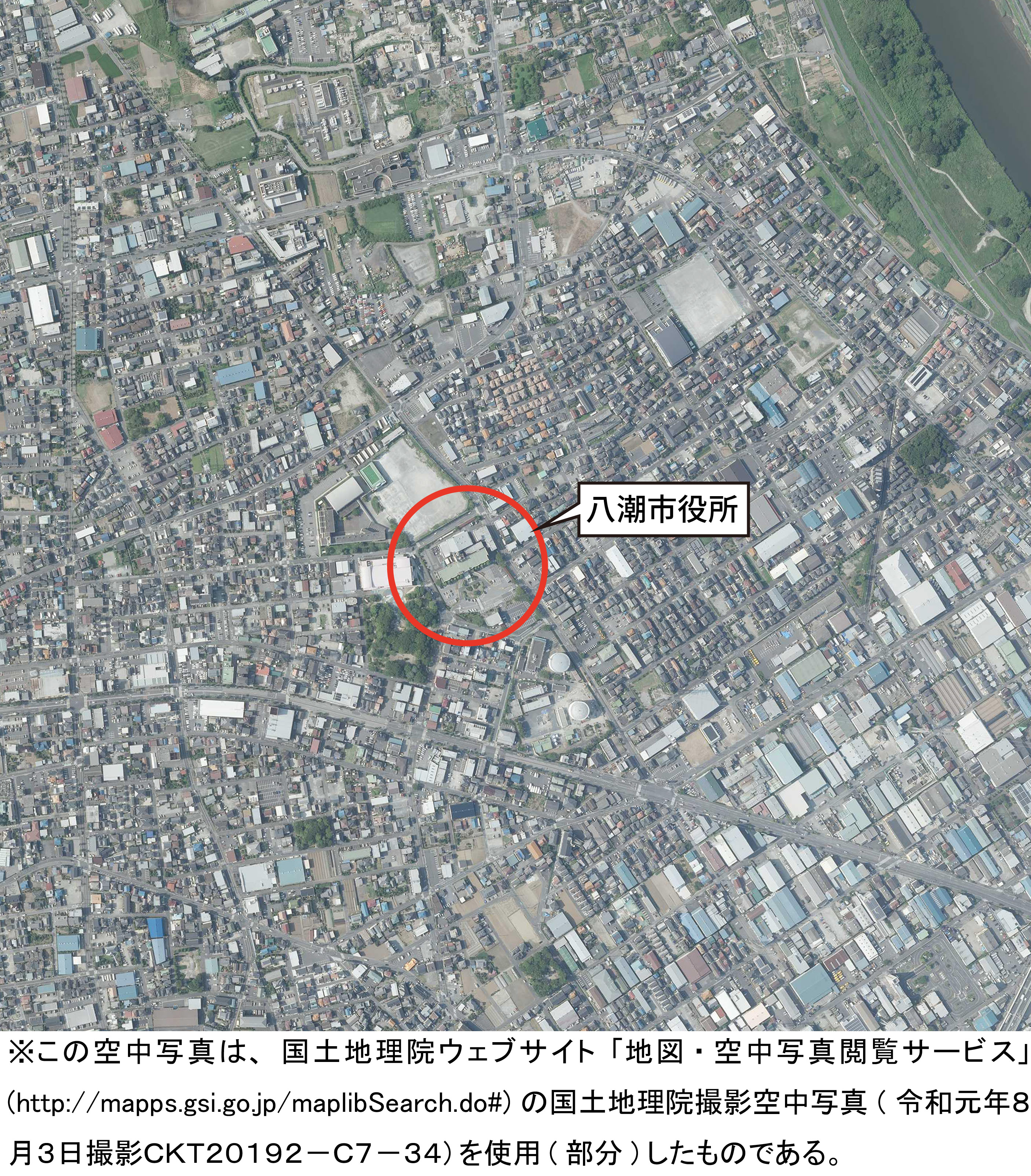 - タイトル:令和元年(2019年)8月3日 空中写真(八潮市役所周辺)