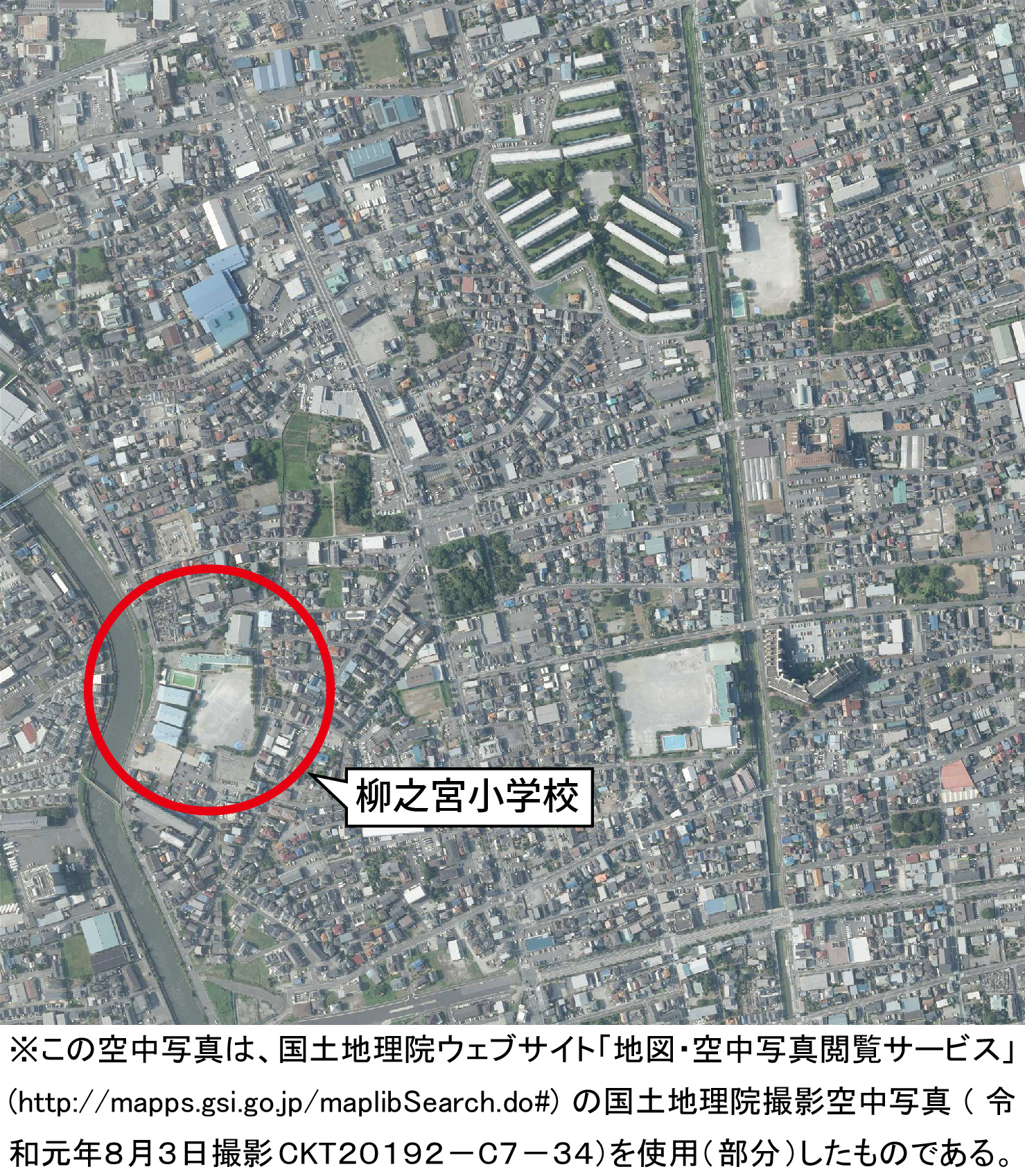 - タイトル:令和元年(2019年)8月3日 空中写真(柳之宮小学校周辺)