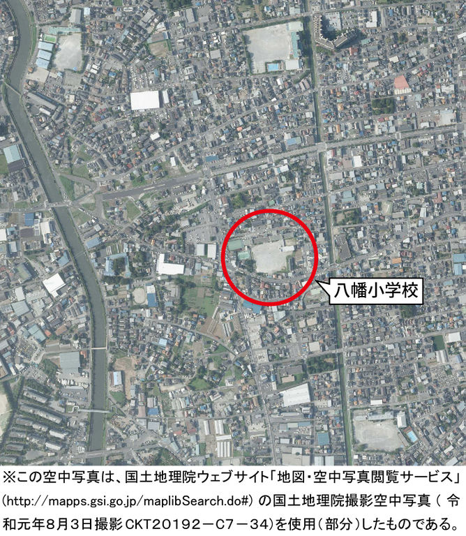 - タイトル:令和元年(2019年)8月3日 空中写真(八幡小学校周辺)