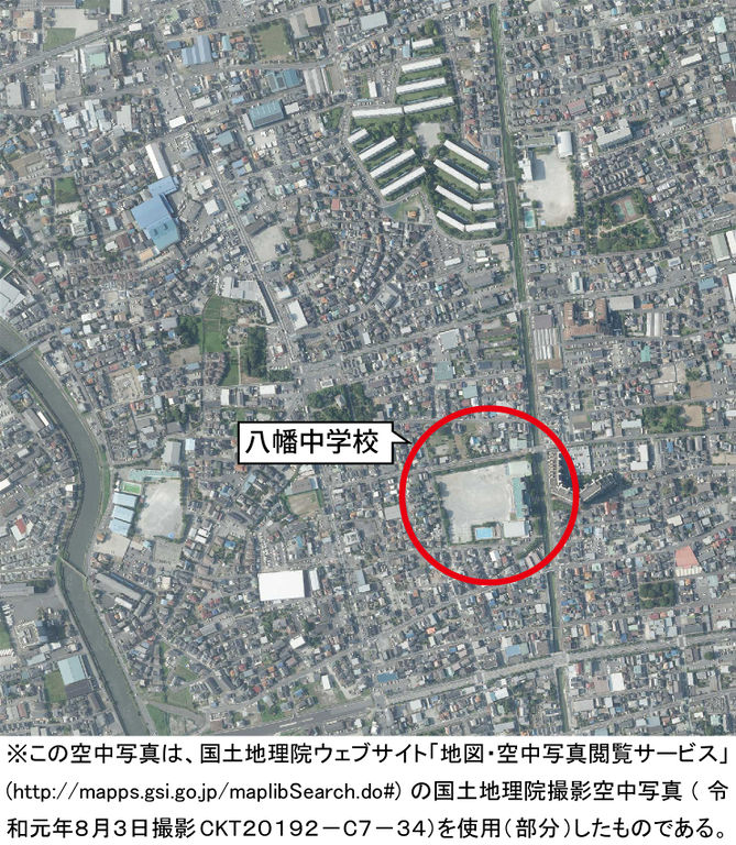 - タイトル:令和元年(2019年)8月3日 空中写真(八幡中学校周辺)