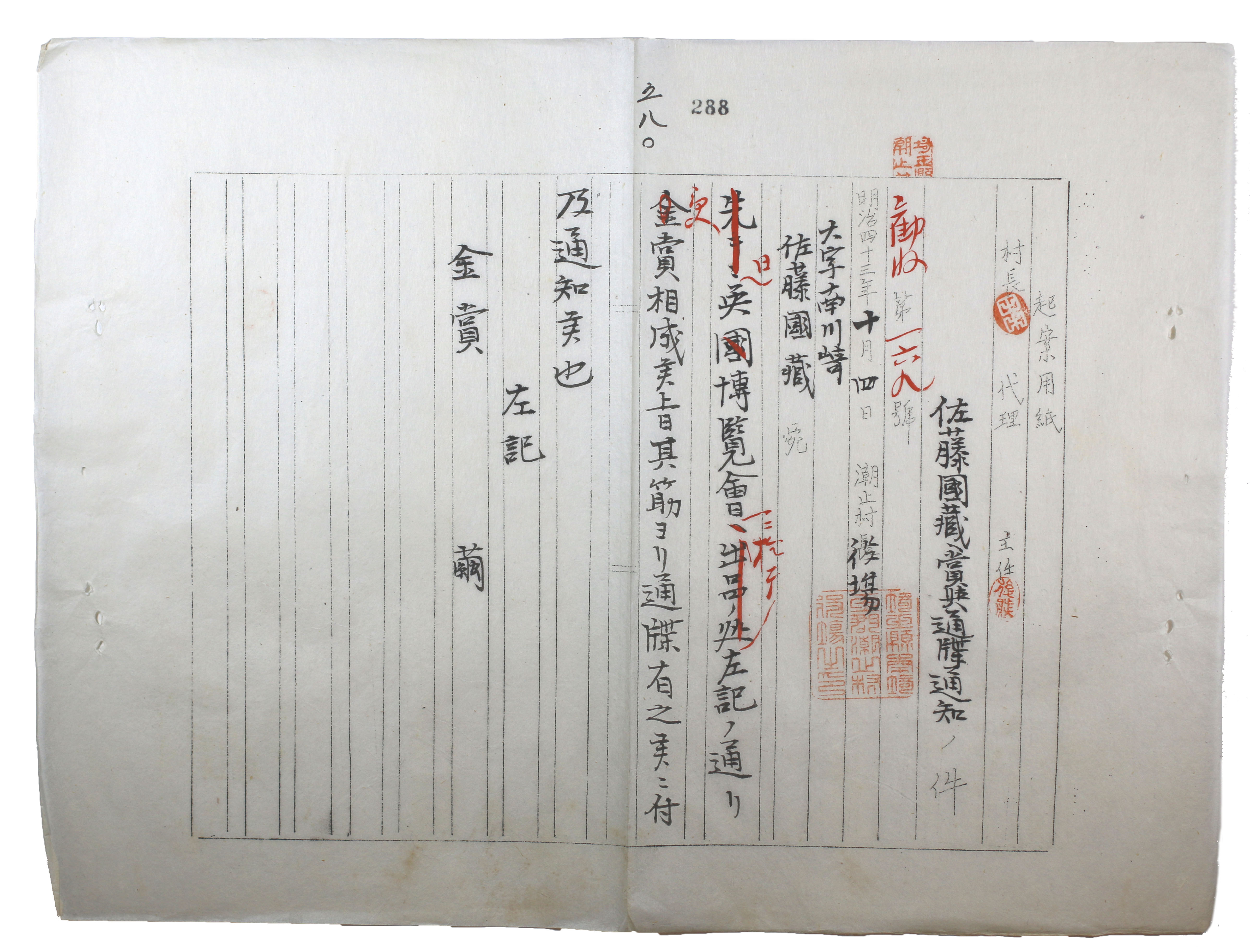 - 出典:八潮市立資料館所蔵 公文書5729 勧業綴〔つづり〕 288/資料館撮影