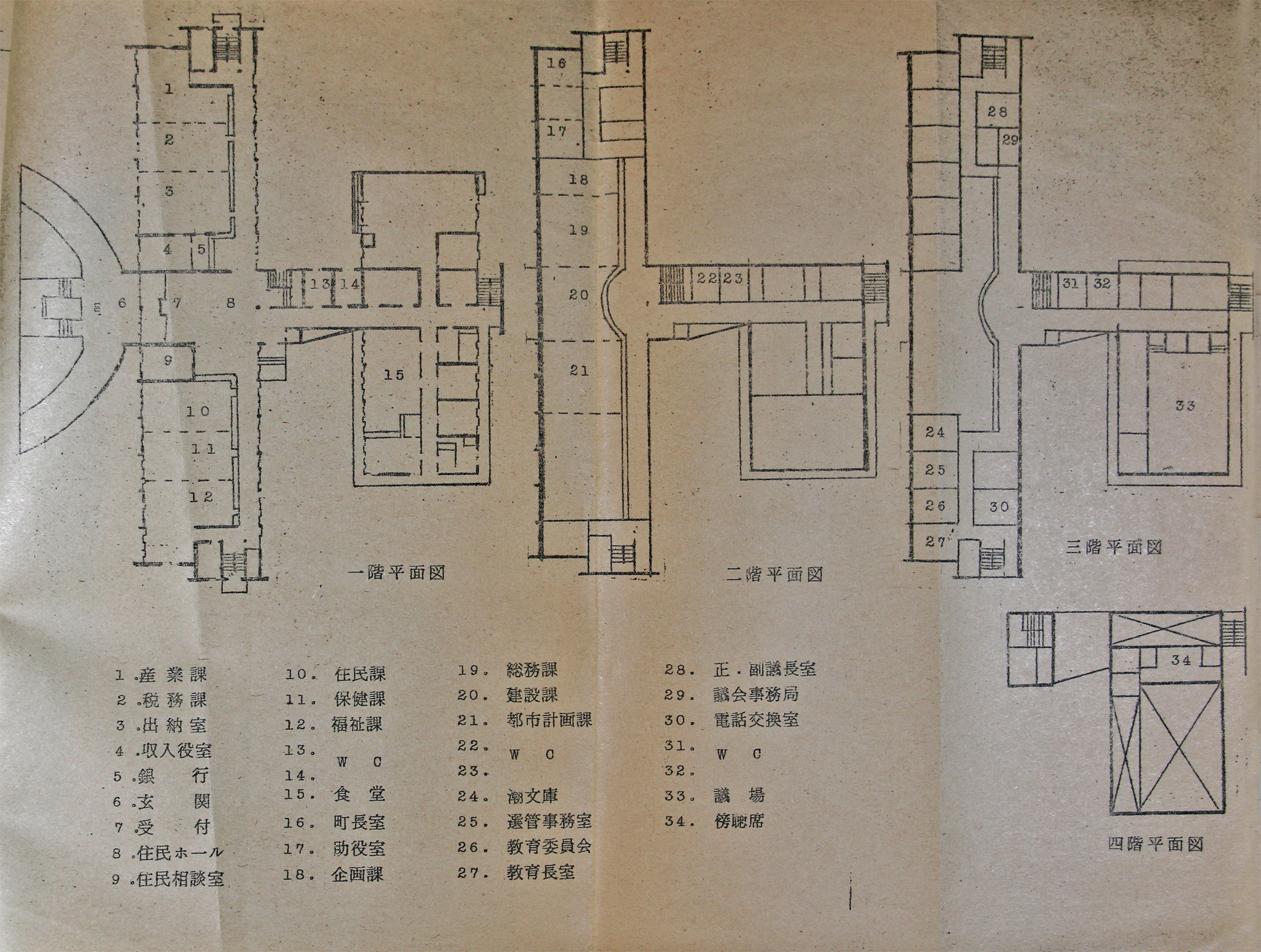 - タイトル:昭和46年(1971年) 八潮町役場新庁舎各課配置図