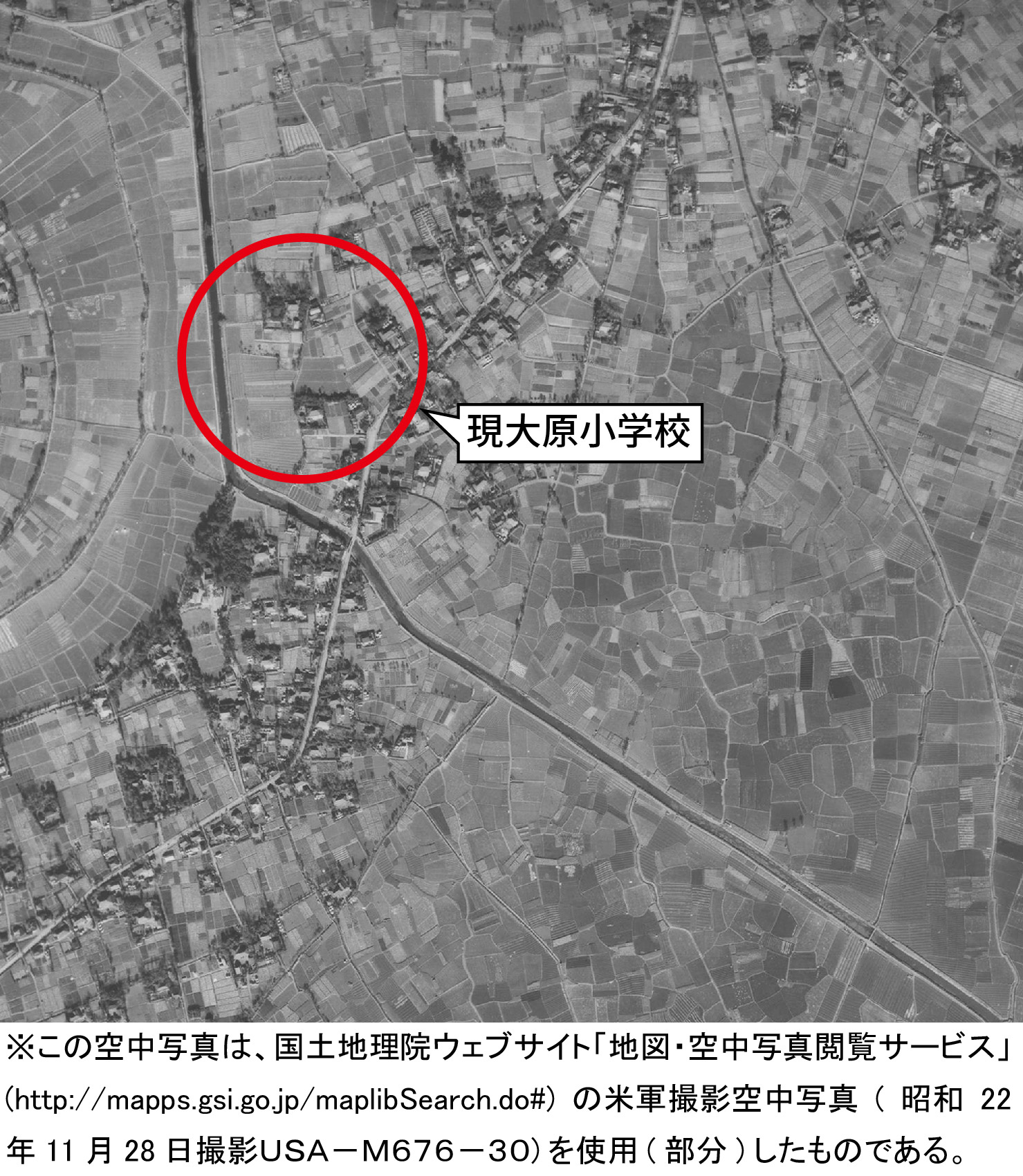 - タイトル:昭和22年(1947年)11月28日 空中写真(現在の大原小学校周辺)
