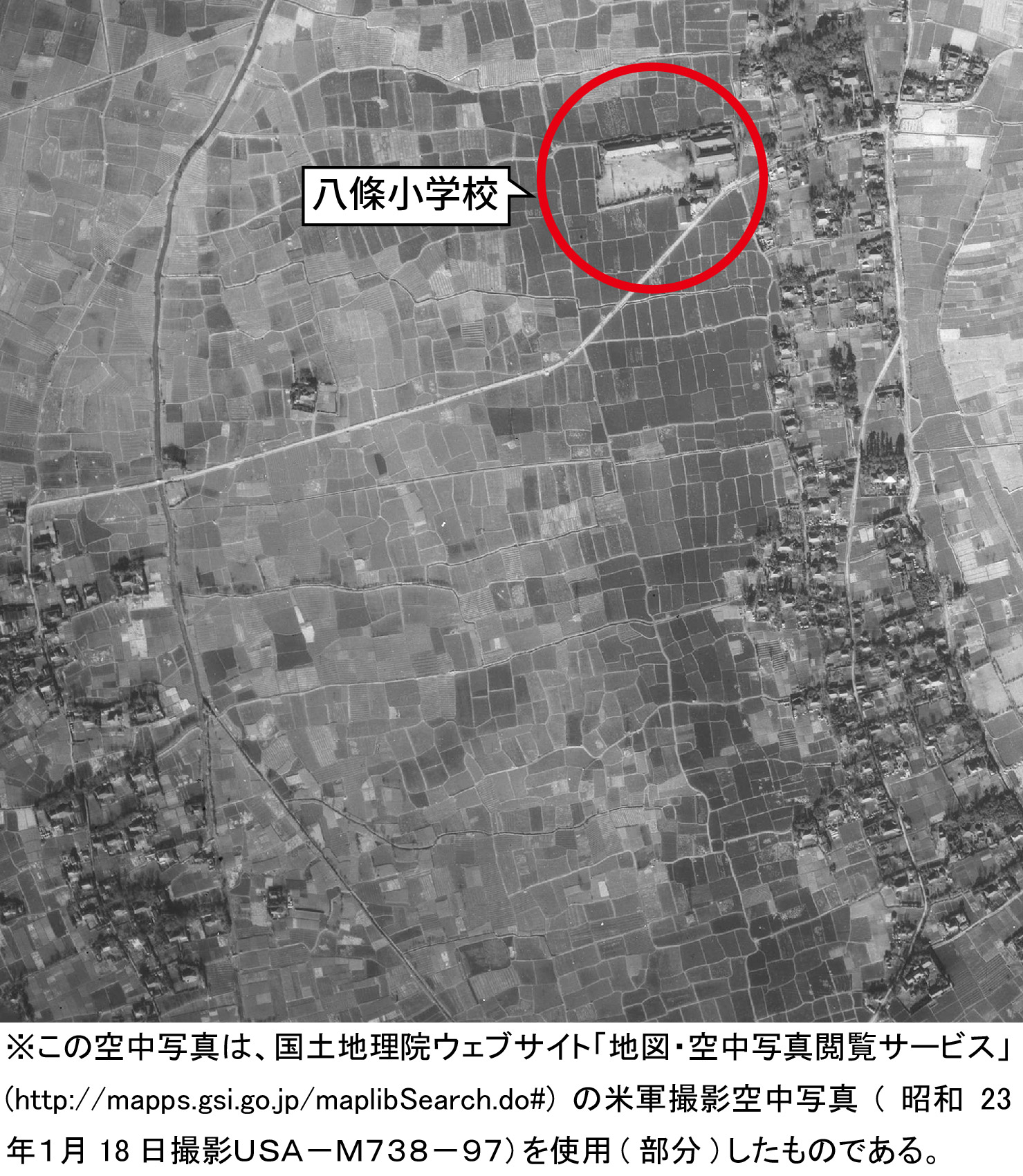 - タイトル:昭和23年(1948年)1月18日 空中写真(八條小学校周辺)