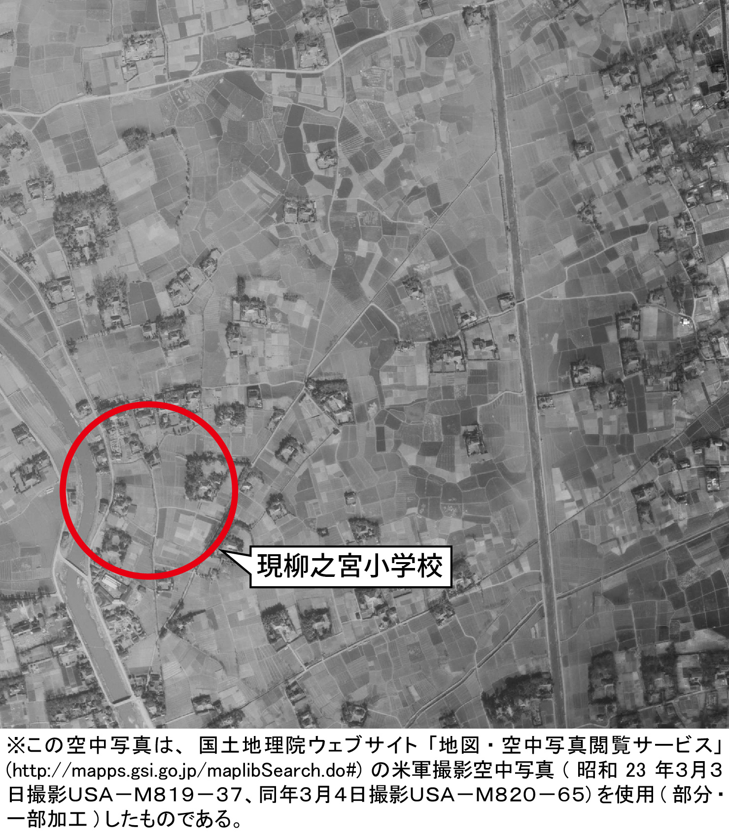 - タイトル:昭和23年(1948年)3月3日・4日 空中写真(現在の柳之宮小学校周辺)