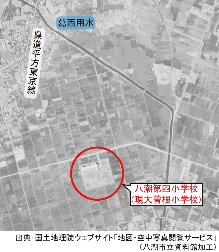 - 出典:国土地理院撮影空中写真MKT704X-C2-1(国土地理院ウェブサイト「地図・空中写真閲覧サービス」)/八潮市立資料館加工