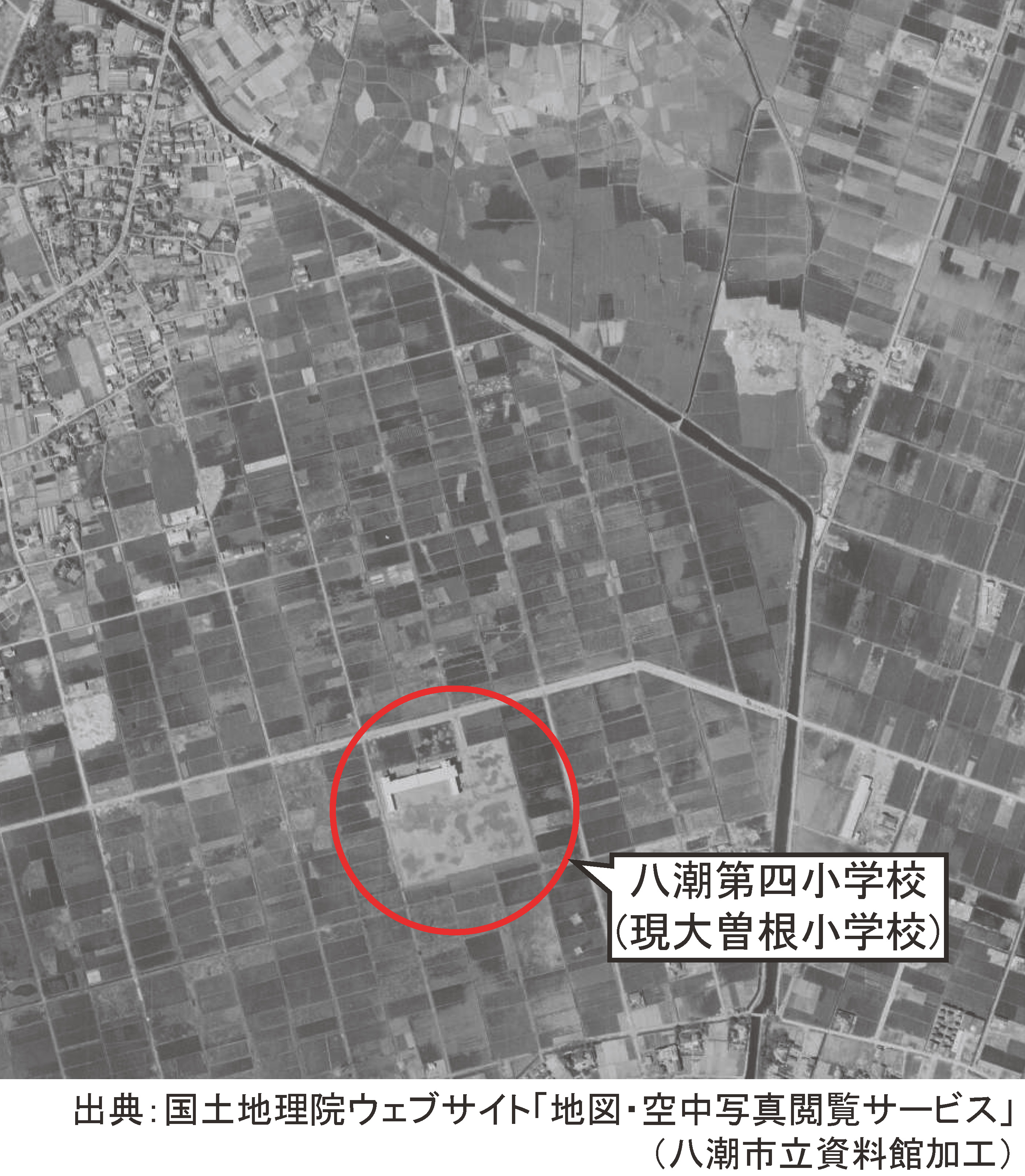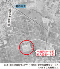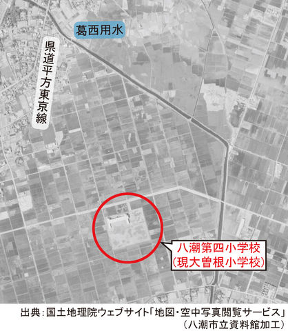 - タイトル:昭和45年(1970年)4月23日 八潮第四小学校(現大曽根小学校)周辺空中写真