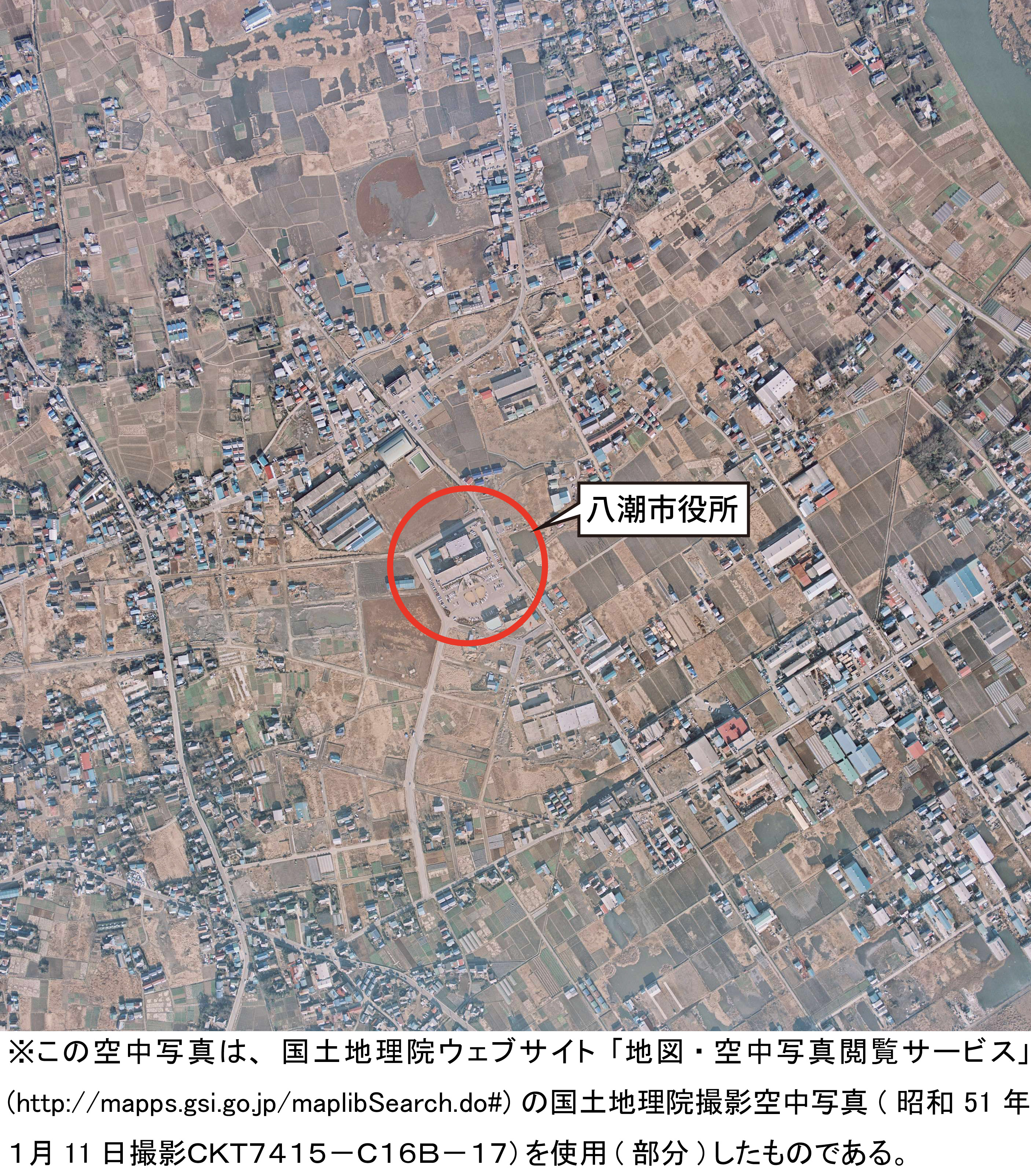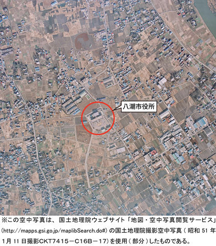 - タイトル:昭和51年(1976年)1月11日 空中写真(八潮市役所周辺)