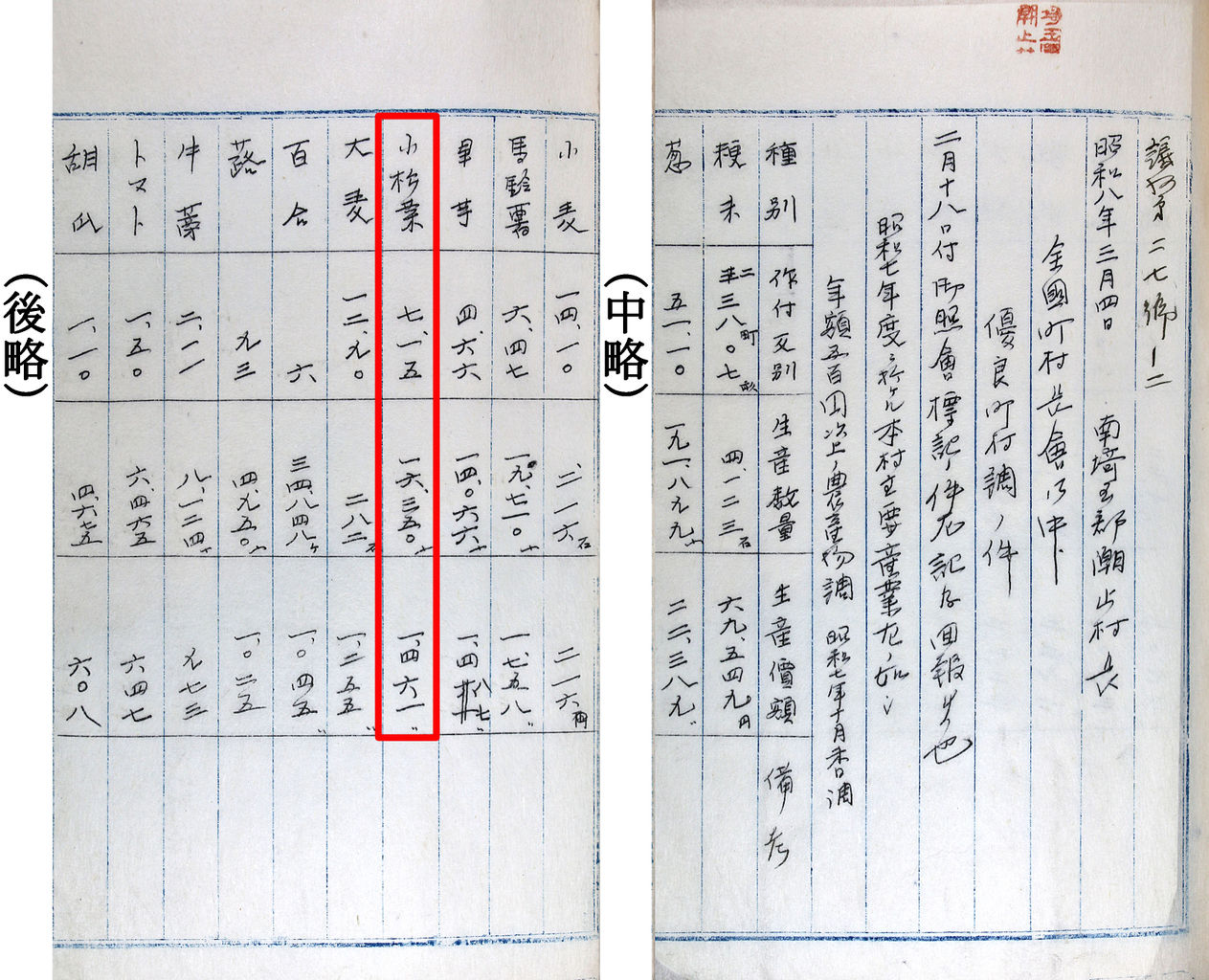 - タイトル:昭和8年(1933年) 優良町村調査報告(農産物調)